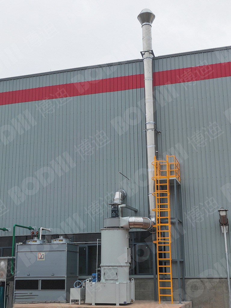 解决方案:通过对用户现场工况的勘察,博迪为用户定制了个性化的油烟捕集与治理解决方案。多用炉、转底炉生产线共用一套热处理专用油烟净化系统(包括: 油烟净化器、排放管道、控制系统等),处理可控气氛热处理工艺过程中所排出的废气,这些废气包括:油烟、碳黑颗粒物、含碳黑颗粒物燃烧废气、含水蒸汽的油烟挥发物等。推荐使用HCY-1200WF文丘里水式过滤主机,既保证设备运行的安全,又能满足过滤后的排放要求。并且在管道入口处增加一套管道喷淋系统,用以降低温度隔绝火源,且具有预过滤作用。为节约能耗,在回火炉罩口增加自动风阀,与回火炉联动,当回火炉门打开时自动风阀打开,并控制风机变频提高风量。废气进入除尘器后经离心分离和湿式分离,室外15m高空排放,所有废气经收集净化处理后符合国家排放标准。